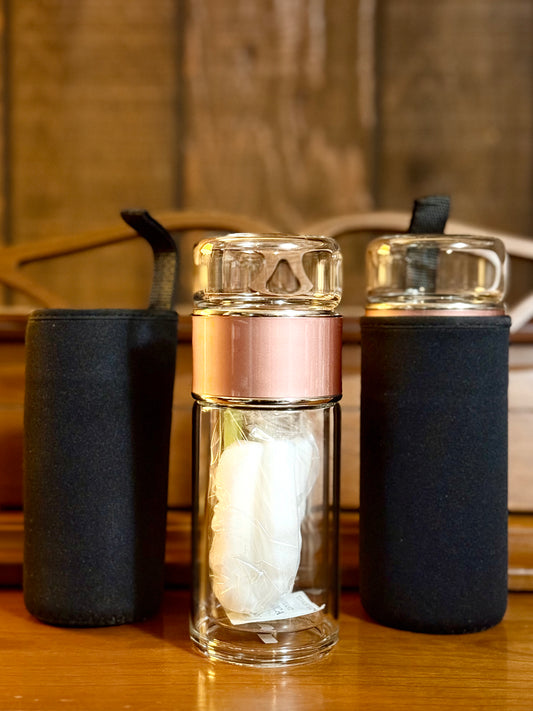 Double Layer Borosilicate Glass Tea Bottle with stainless steel tea strainer, 12 oz.