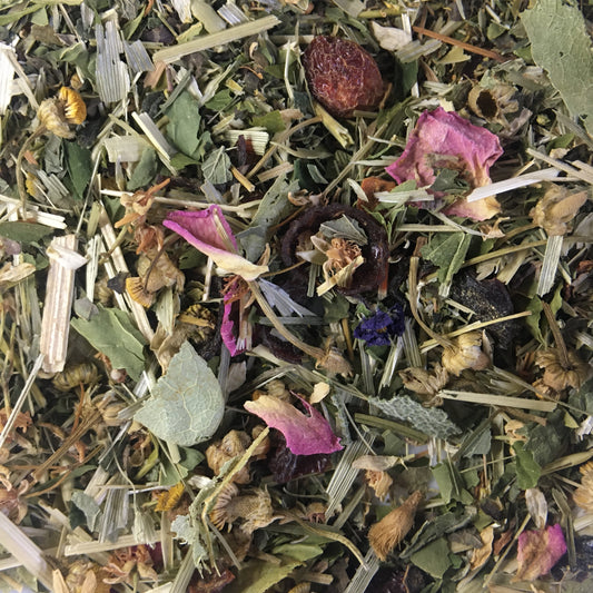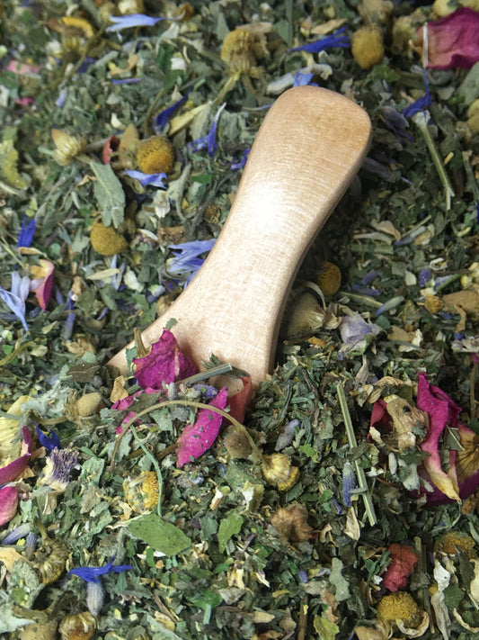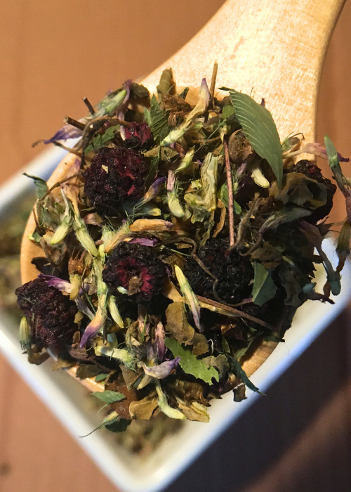 A nourishing summer blend including wild Wisconsin blackcap raspberries, red clover, and tulsi.
